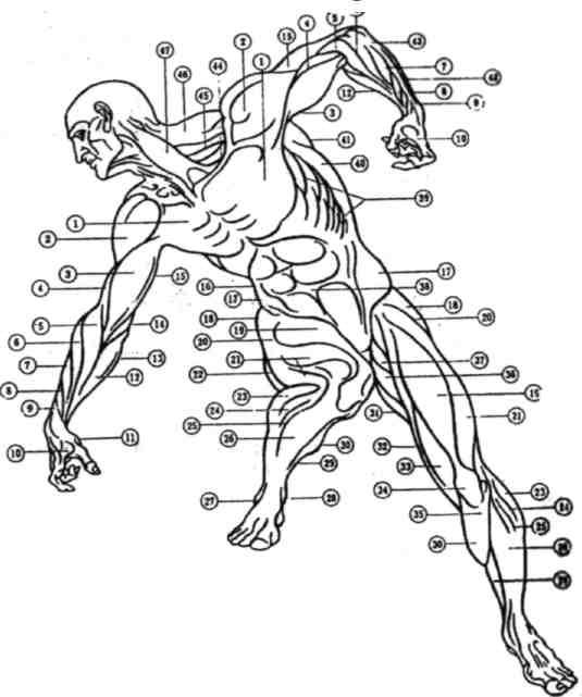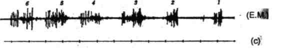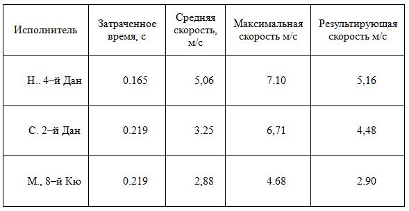 Когда движущийся в цель кулак достиг максимальной быстроты, электромиограмма показывала абсолютно ровный участок. Это можно объяснить так: чтобы достигнуть еще более высокой скорости, мышцы должны были бы находиться под опасностью повреждения либо сообщение из мозга или импульс к нанесению удара может посылаться лишь до точки, предшествую щей максимальной скорости.