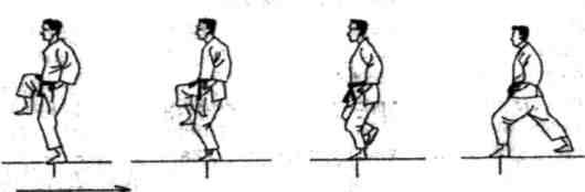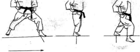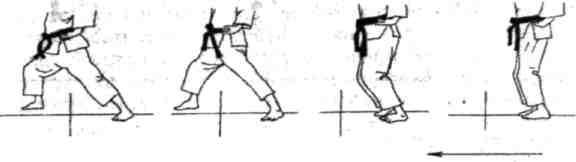 Повторите это движение несколько раз, а затем проделайте его в противоположную сторону. После дополнительных тренировок в этих движениях шагайте непрерывно вперед из ХидариДзэнкуцуДачи в МигиДзэнкуцуДачи и далее в ХидариДзэнкуцуДачи без возвращения в прежнее положение, как это вы делали раньше.