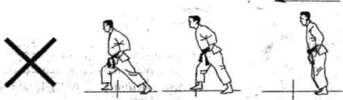 Пятка задней стопы поднята, и передняя нога слишком загружена весом во время движения вперед. Если противник зацепит вашу стопу приемом ДэАшиБараи (боковая подсечка), вы упадете. Держите пятку толчковой стопы крепко прижатой к земле.