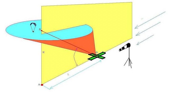 Базовая точка. Это точка в пространстве, откуда пилот должен следовать до конца своего полёта в режиме - прямолинейное планирование. Если он, конечно, решительно намерен приземлиться в обозначенную точку. Для этого нужно выбирать точку, после прохождения которой параплан будет находиться в воздухе не более 30-40 секунд. Далее - сплошная арифметика. Допустим, Ваш параплан при полностью отпущенных клевантах выдаёт 36 км/ч (. Снижение его при этом - 1,2 м/сек. Сразу проясним, что идти надо по оси воображаемого конуса. Значит, слегка притормаживаем параплан до 30 км/ч (8,3 м/сек). Скорость снижения при этом увеличивается. Прокачиванием крыла клевантами (к этому режиму полёта мы ещё вернёмся подробнее) мы добиваемся снижения 1,6 м/сек. Вот от этих-то данных и расчитаем мы углы захода на последней прямой.