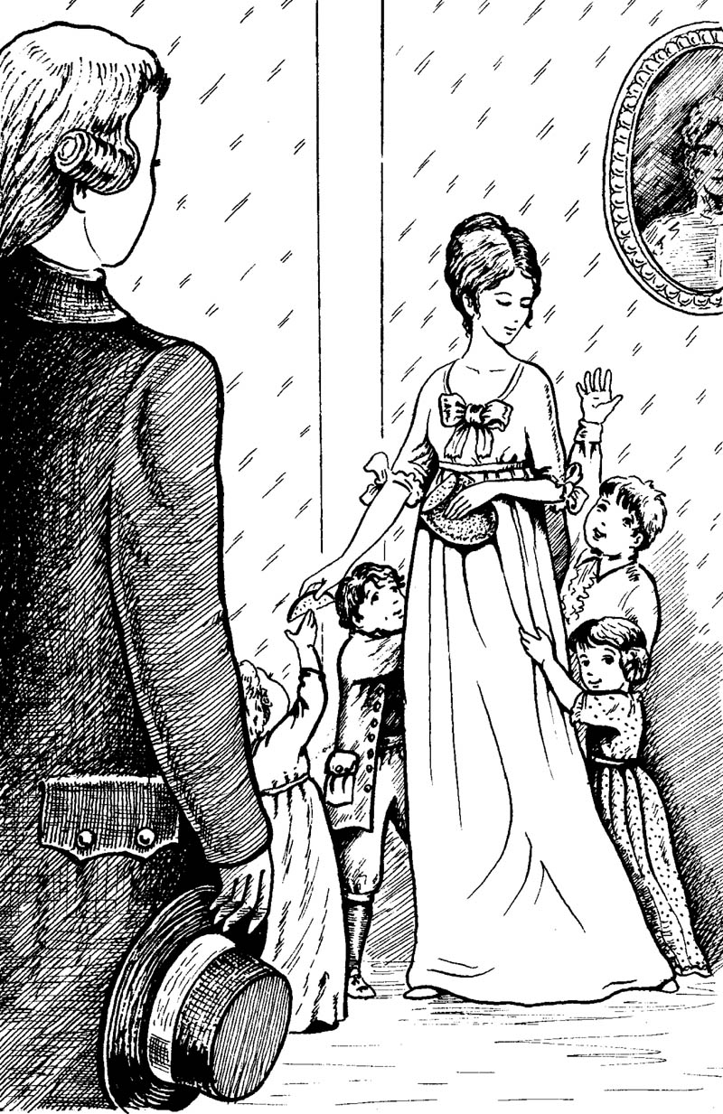 »Vetter?« sagte ich, indem ich ihr die Hand reichte, »glauben Sie, daß ich des Glücks wert sei, mit Ihnen verwandt zu sein?« »O,« sagte sie mit einem leichtfertigen Lächeln, »unsere Vetterschaft ist sehr weitläufig, und es wäre mir leid, wenn Sie der schlimmste drunter sein sollten.« Im Gehen gab sie Sophien, der ältesten Schwester nach ihr, einem Mädchen von ungefähr eilf Jahren, den Auftrag, wohl auf die Kinder acht zu haben und den Papa zu grüßen, wenn er vom Spazierritte nach Hause käme. Den Kleinen sagte sie, sie sollten ihrer Schwester Sophie folgen, als wenn sie's selber wäre, das denn auch einige ausdrücklich versprachen. Eine kleine, naseweise Blondine aber, von ungefähr sechs Jahren, sagte: »Du bist's doch nicht, Lottchen, wir haben dich doch lieber.« Die zwei ältesten Knaben waren hinten auf die Kutsche geklettert, und auf mein Vorbitten erlaubte sie ihnen, bis vor den Wald mitzufahren, wenn sie versprächen, sich nicht zu nekken und sich recht festzuhalten.