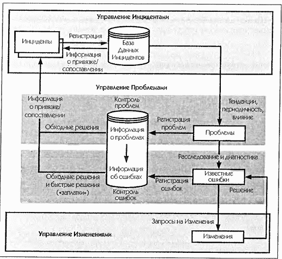 Рис. 5.2. Отношения между Процессами Управления Инцидентами, Управления Проблемами и Управления Изменениями