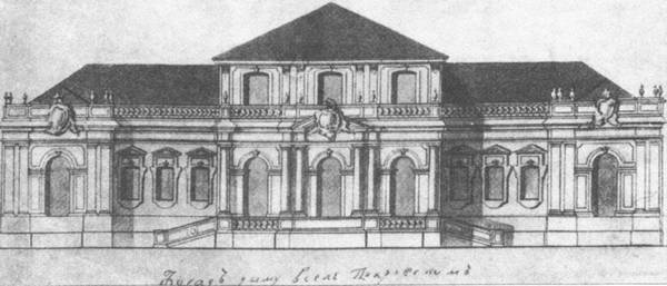 Проект главного дома в усадьбе Глебовых-Стрешневых Покровское-Стрешнево Московского уезда. Чертеж 1748 г.