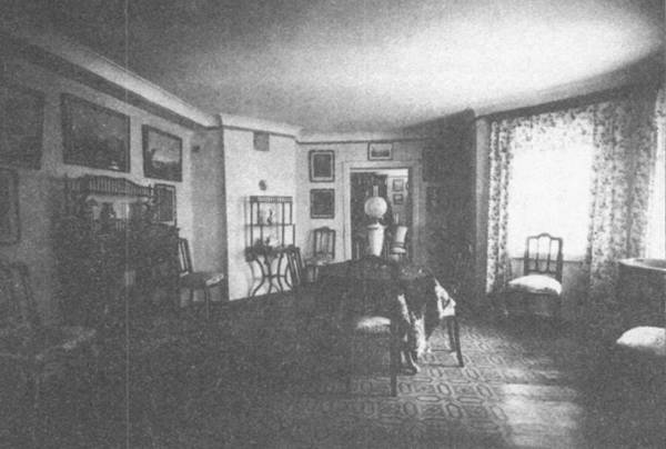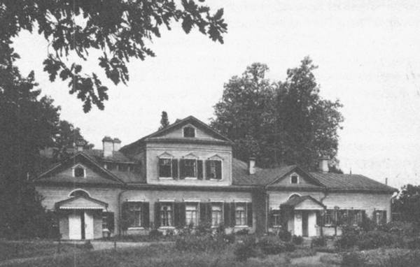 Деревянный дом Муранова снаружи малоинтересен он характерен для эклектических вкусов 40-х годов прошлого столетия. Небольшой, какой-то хилый, унылый парк примыкает к дому за ним поля и частый, мрачный еловый лес с невысокими деревьями и отмершими из-за частоты роста и недостатка света нижними ветвями. На небе серые заволакивающие тучи они еще больше содействуют меланхоличности и унылости усадьбы, собственно, неведомо почему возникшей в этой малопривлекательной местности под Сергиевым. Мураново привлекает только как музей прогулка туда сама по себе не представляет ничего привлекательного.