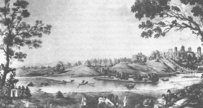 Вид села Царицына с западной стороны. Рисунок О. Бове 1840 г.