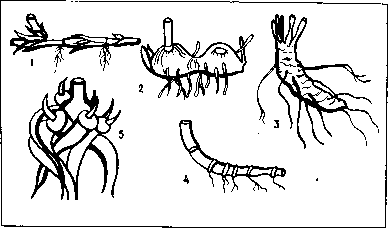 Рис. 4. Корневище (видоизмененный подземный побег с чешуевидными листьями, верхушечными почками):