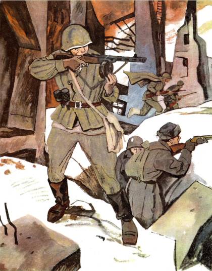 Пробежали солдаты ещё несколько шагов. Снова бьёт пулемёт. Теперь уже справа. Повернулся Трусов. Подобрался к пулемётчику. Бросил гранату. И этот фашист утих.