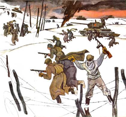 Пробиваются танки дальше. Всё ближе и ближе они к Сталинграду.