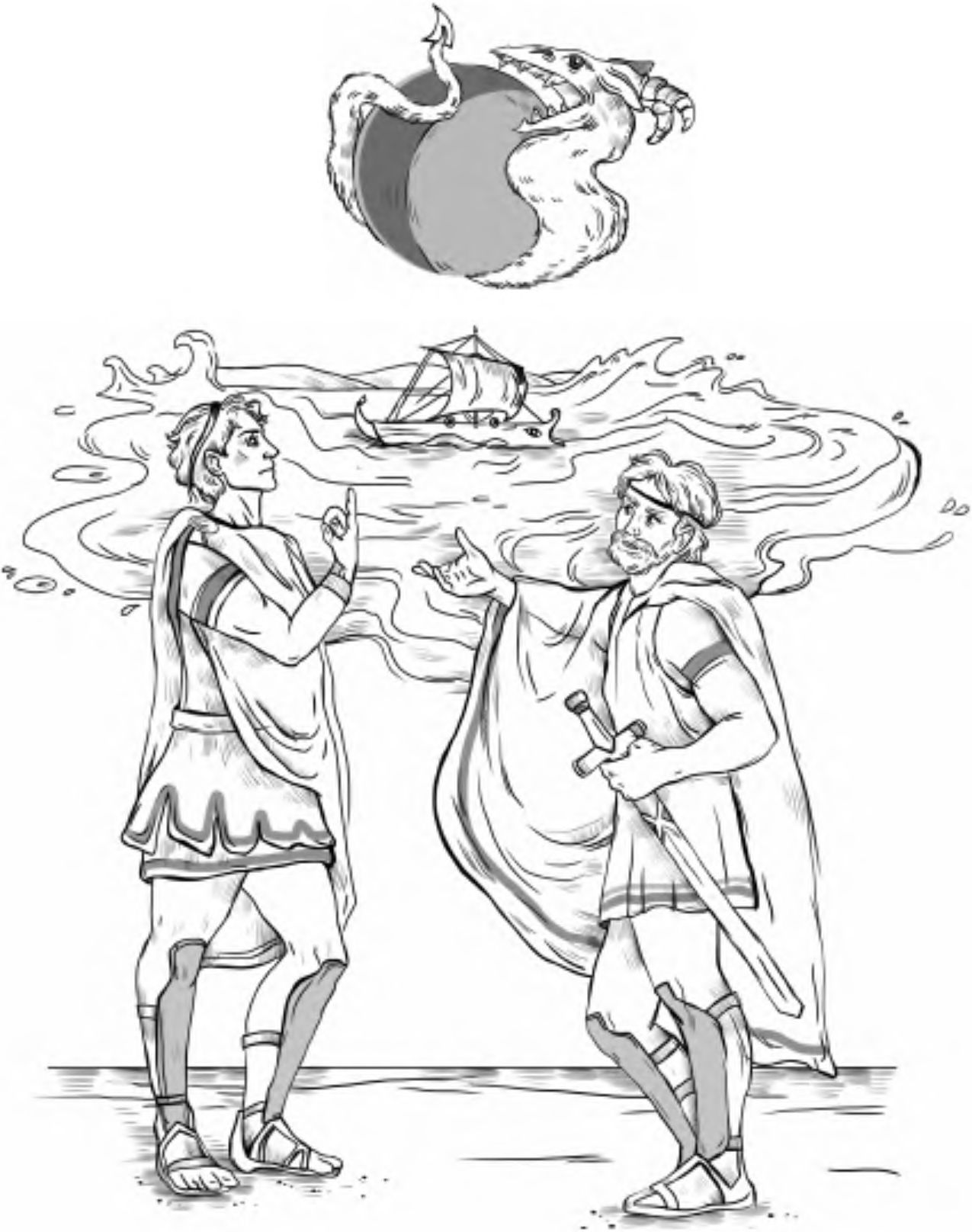 В те времена некоторые люди уже понимали, в чем причина затмений Солнца. Они знали, что, когда Луна проходит между Солнцем и Землей, она загораживает собой солнечный свет. Знал это и Перикл вождь афинской демократии (V век до нашей эры). Когда он снарядил флот для большой морской экспедиции, случилось затмение Солнца. Лоцман испугался и отказался вести корабли в открытое море. Тогда, чтобы его успокоить, Перикл натянул перед ним свой плащ и спросил, считает ли лоцман, что плащ Перикла служит знаком несчастья? Лоцман ответил отрицательно.