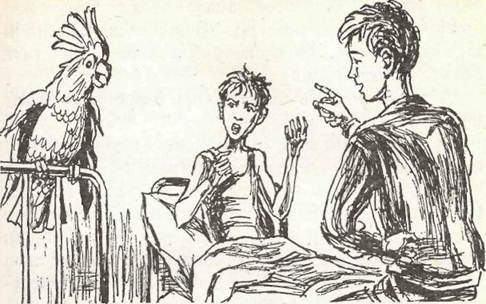 Джек выбрался из постели и, неуверенно ступая по полу, подошел к двери. Ребята только что перенесли грипп и все еще ощущали ужасную слабость. Особенно тяжко пришлось Филиппу. Он был просто не в состоянии находиться в одной комнате с не в меру бойким попугаем. Несмотря на всю свою любовь К животному миру, его так и подмывало схватить тапочки, книжки или еще что-нибудь увесистое и запустить все это птице в голову.