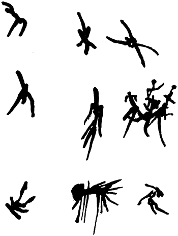 Странный способ борьбы с заторами дать отоспаться говорящей, пишущей части своего естества (нет, это не часть, а скорее система соединений). Начать рисовать это как выбрать другой подъездной путь. Фабрика слов, словомыслей, словообразов исчезает, тонет с головокружительной скоростью так просто. И ее больше нет. Кишение прекращается. Темнота. Местами смерть. Никакого желания, аппетита к речи. Та область головы, которая всем этим занималась, охлаждается. Удивительный опыт.