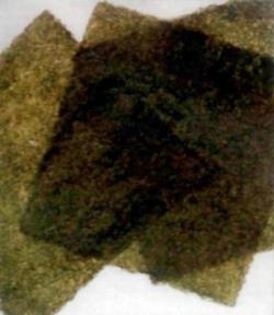 4. ЛИСТЬЯ НОРИ изготовляют из прессованных и просушенных пурпурных морских водорослей. Благодаря обжариванию вкус почти что черных листьев становится приятным. Если цвет листьев зеленый их прожарили до обработки.