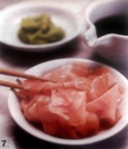 7. ГАРИ, или ШОГА, консервированный имбирь кремового или розового цвета необходим в качестве приправы при при готовлении любых типов суши.