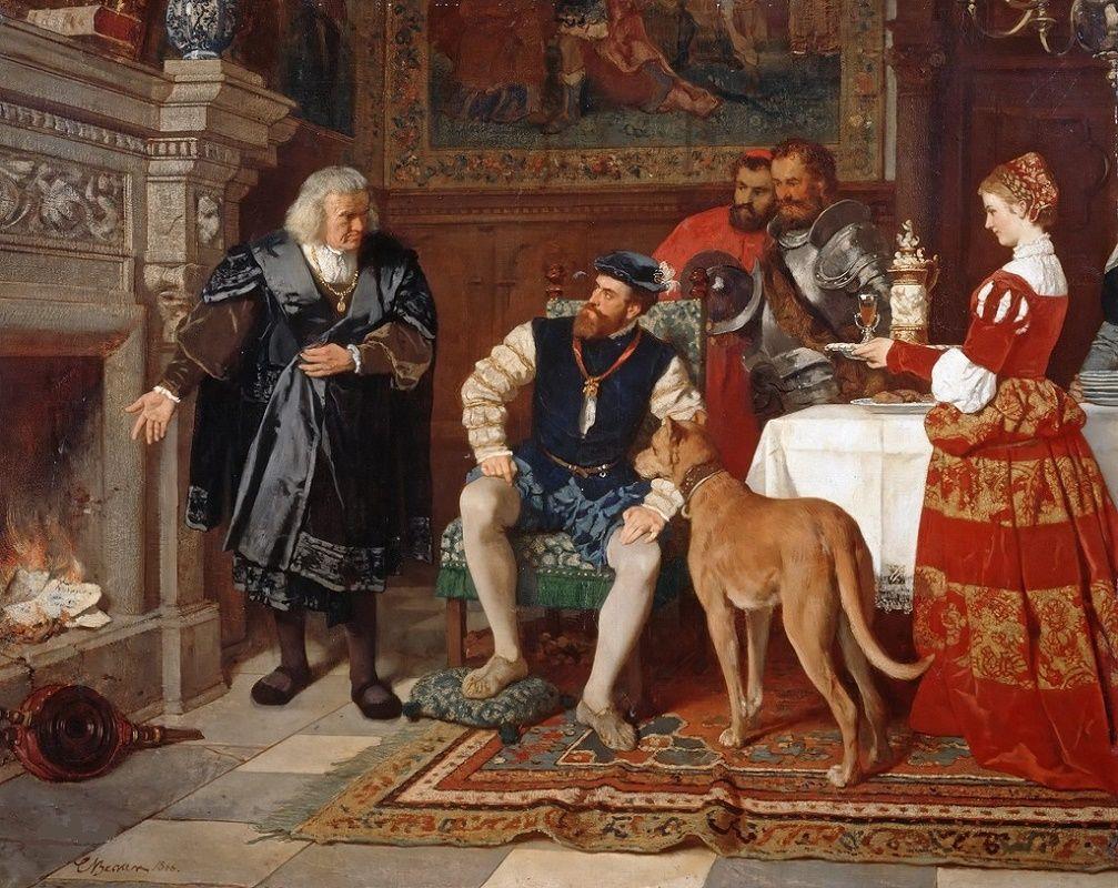 - На этой кровати ночевал император Священной римской империи Карл. По легенде, Якоб Богатый, мой предок, попросил у него разрешение растопить камин бумагой с его подписью. Карл полюбопытствовал, что это за бумага. Она оказалась кредитным обязательством императора на пятьдесят тысяч флоринов. Пока Карл проживал в этих покоях, комнату отапливали корой коричного дерева. Несколько тысяч золотых буквально вылетели в трубу.