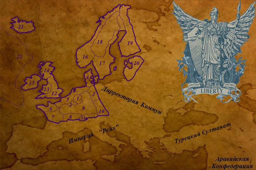 Рис. 1 Карта Либеральной Капиталистической Республики с входящими в неё государствами.