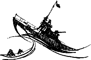 До «драконовых зубов» оставались считанные метры. Двигатель стих, но тотчас, пущенный на полный назад, завыл с новой силой. Затем опять командир дал полный вперед. Однако заминки оказалось достаточно, чтобы двухметровый бурун догнал корабль и вскинул его на вершину своего пенящегося гребня.