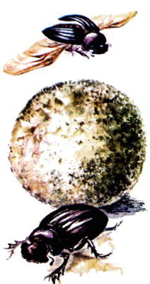 Навозники гамалокопры обычные обитатели пустыни. У них изумительное обоняние. Свежий навоз они чуют на громадном расстоянии. Наш гамалокопр изрядно потрудился. Его шар весил около двух килограммов И заготовил он его для своей детки.