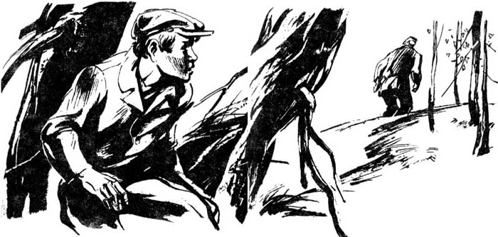 Наконец незнакомец появился за воротами, но, вместо того чтобы идти по дороге, свернул на глухую боковую тропинку.