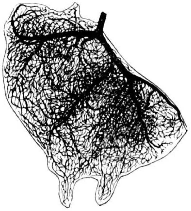 Рис. 10. Артерни молочной железы (рентгеновский снимок)