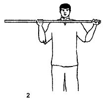 2. Высокая позиция I (рис. 2). В данной позиции руки согнуты в локтях. Шест удерживается на уровне плеч.