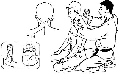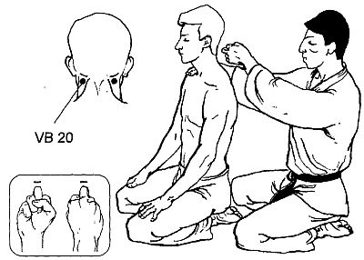 2. Акуперкуссия точек Фу-ти, VB20 согнутым 3 пальцем («кулак демона»)