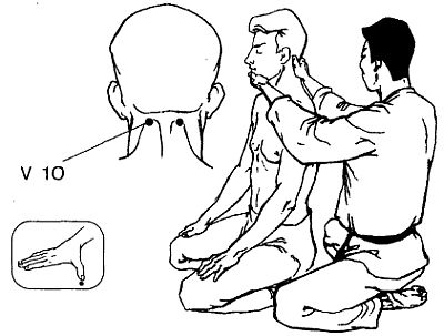 4. Акупрессура и акуперкуссия в области точек Тэн-чу, V10.