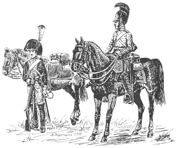 Будет 2 дивизии: одна тяжелой кавалерии, составленная из 4 полков 3 кирасирских и 1 драгунского, другая лёгкой кавалерии из 7 полков. Люди, оставшиеся без лошадей, направлены в нестроевые части впредь до снабжения их лошадьми» (143 ч. 3, с. 6).