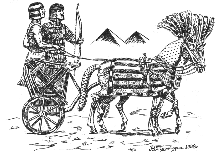 Хеттско-египетская конструкция, как правило, отличалась лёгкостью. На колёсах устанавливали 4 или 6 спиц, возможно, изготовленных из металла, что придавало колесу необходимую жёсткость и устойчивость. Ось, если и изготавливалась из дерева, то непременно из самых твёрдых сортов. Это относится и к дышлу, которое обычно не крепилось к оси, а присоединялось к передней части кузова .