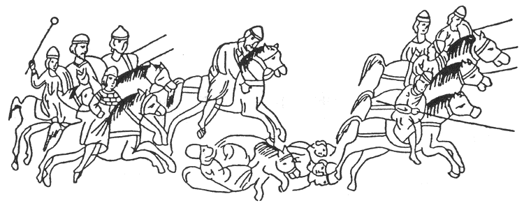 «Готы отпустили своих лошадей, и все спешились, направив свой фронт против неприятеля и построившись в глубокую фалангу. Когда римляне это увидели, то также спешились и построились таким же образом» (195, т. 2, с. 265266).