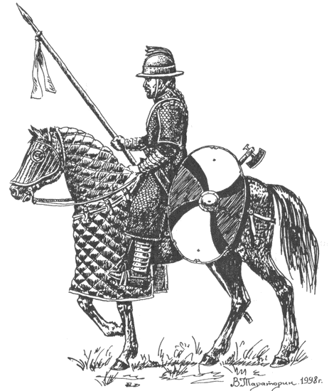 Но не стоит считать, что только от экономического положения конников зависело устройство боевого порядка. Переводчик трактата «Стратегика императора Никифора» полагал, что именно скудность средств византийской казны не позволяла обеспечить бронёй всех лошадей, и поэтому она была только у воинов первой шеренги (80, с. 42). В этом он ошибался.