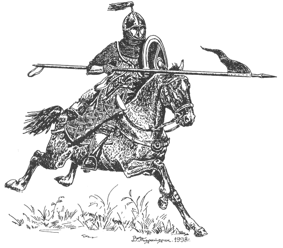 В целом, организационная система армии германцев была точно такой же, как у франков. В их коннице процент стрелков тоже был очень мал, основным же оружием конников были копьё и дротик. Это хорошо видно из описания поединка между баварским всадником и его противником итальянцем, которое оставил нам епископ Лиутпранд в «Воздаянии». Данный