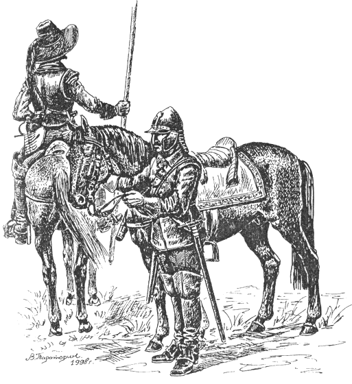 Для организации конных отрядов Макиавелли предлагает древнеримскую военную систему и считает, что вооружение всадников должно быть следующим: