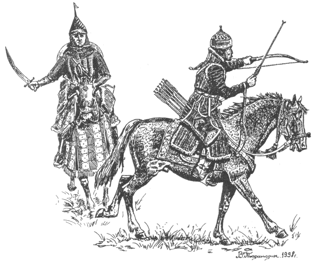 Мы, право, затрудняемся представить, что мог бы сделать даточный крестьянин в бою, будь он даже снабжён доспехами, луком или огнестрельным оружием, но при этом не умея ими пользоваться. Видимо, речь в документах идёт о некой воинской прослойке, составлявшей монастырские дружины. Ведь монастыри, так же как и бояре, нуждались в защите и контроле над своими владениями и во избежание бунтов давали возможность профессиональным воинам селиться на монастырских землях, выделяя им участки с соответствующим количеством крестьян.