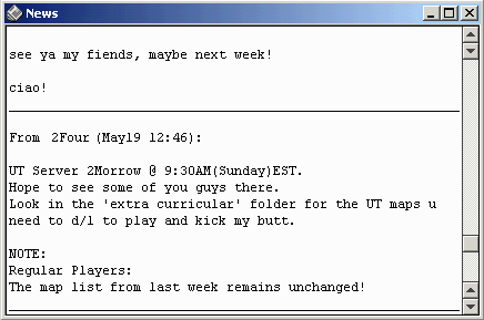 Система ведения новостей была предельно проста: всего две операции: открыть новости ("News") и отправить туда сообщение ("Post"). Всем остальным занимался администратор.