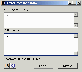 Пользователи с включенным флажком "Refuse Private Messages" отмечаются в окне "Online Users" пиктограммой .