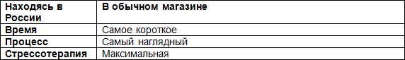 Табл.2. Исключительные достоинства покупок в обычном магазине