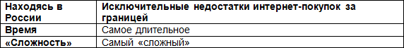 Табл.4. Исключительные недостатки интернет-покупок за границей