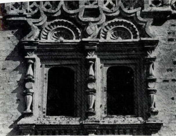 Этот зал выделяется из ряда окружающих построек своим крупным, столичным масштабом. Даже цокольный этаж этого здания выше обычных этажей рязанских построек, хотя здесь он оказывается низким, как бы придавленным постаментом для основного этажа, с его ионическими пилястрами, поддерживающими высокий, развитой карниз и аттик, с сочными полуциркульными сандриками окон и гербами городов Рязанской губернии над ними. Торжественный, эффектный, этот зал наполнен вместе с тем блеском и холодом имперской столицы и плохо вяжется с рядовой застройкой Рязани. Его несколько преувеличенная пластичность фасадов говорит уже о деградации стиля и предвещает переход к тенденциям необарокко и к эклектике второй половины XIX в. (илл. 75, 76).