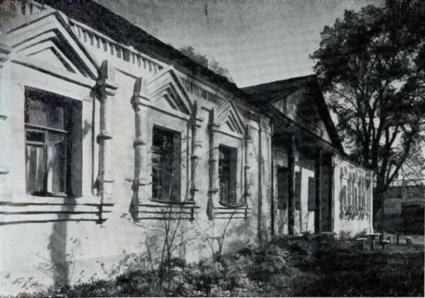 древних зданий монастыря частично сохранился Рождественский собор, перестроенный в середине XVII в. (илл. 108). Он представляет собой пятиглавый храм, в котором бесстолпный четверик вытянут в поперечном направлении и перекрыт сомкнутым сводом. С востока к нему примыкает невысокая трехчастная апсида, с запада двухэтажная пристройка 1691 г., внизу которой находится трапезная, а наверху ризница и библиотека.
