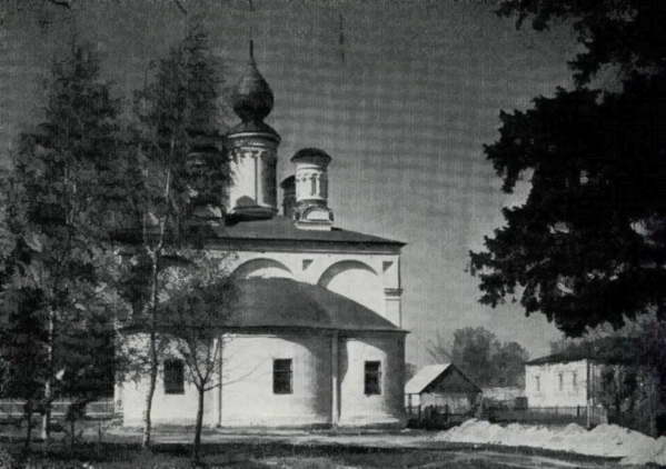 По преданию на этом же месте в конце XIV в. располагалась того же наименования деревянная церковь, которая сообщалась с теремом князя Олега.