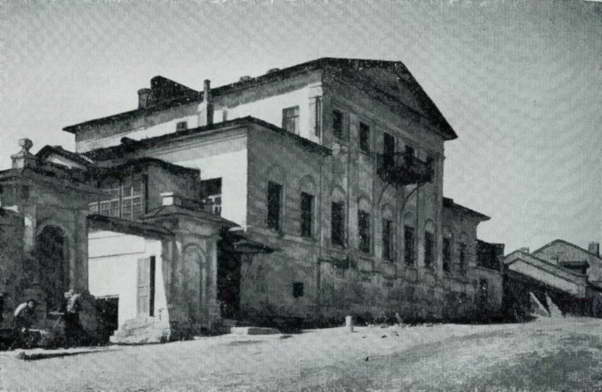 В соответствии с планом 1780 г. были определены границы Соборной площади. Она приобрела форму вытянутого вдоль реки Оки прямоугольника, близкого к квадрату. Вскоре по периметру площадь начинает застраиваться дворянскими и купеческими домами. Наиболее интересный из них дом Наставина стоит в северо-восточном ее углу (угол улиц Губарева и Малой). Он построен в 1813 г. княгиней Е. И. Путятиной, а свое название получил по фамилии последних владельцев купцов Наставиных. Главный фасад его оформлен четырехколонным портиком коринфского типа на высоком белокаменном цоколе, с красивой ажурной чугунной решеткой (илл. 136). Первоначальная отделка его интерьеров не сохранилась.