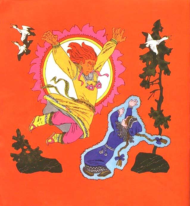 Запели братья песню воителей неба и один за другим улетели. Только Найнас светлой тенью остался в доме. Стал он просить: