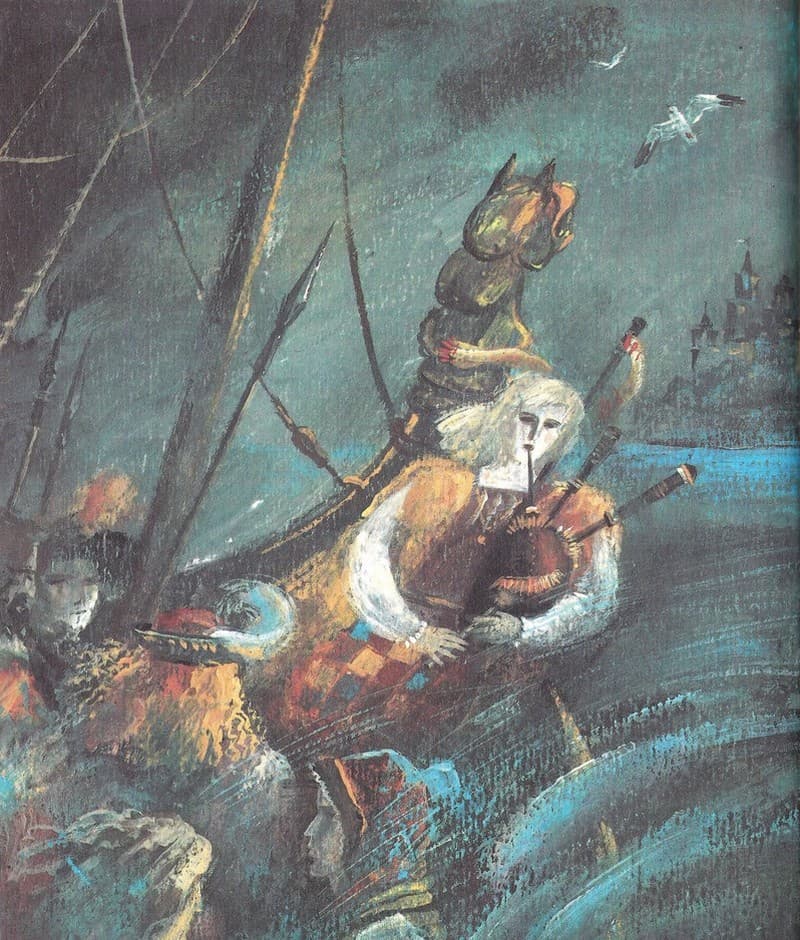 Когда подошла очередь Эйна Ога, он вставил волшебную дудочку в свою волынку и заиграл.