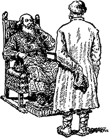 Иду, а руки и ноги трясутся от страха..! Сидит боярин на дорогом своем стольце . Однако не гневен, ногами не топает, не грозится, не кричит, только бороду поглаживает, милостивый такой, усмехается
