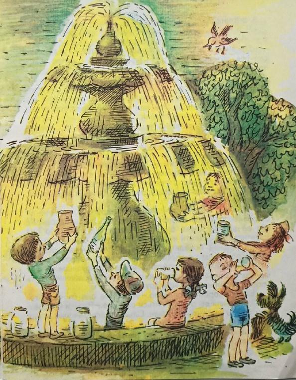Чудеса на её счётчике выскакивали одно за другим. Фонтан на площади вдруг забил не водой, а фантой. Но и здесь чуда, на которое рассчитывал таинственный кто-то, не получилось. За полчаса вся городская фанта вылилась. Зато ребятишки из соседних домов успели сбегать домой за бидонами и набрать её вволю.