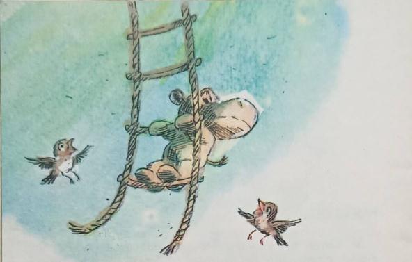 Удивлённый, он увидел, что к нему по верёвочной лестнице спускается Буба.