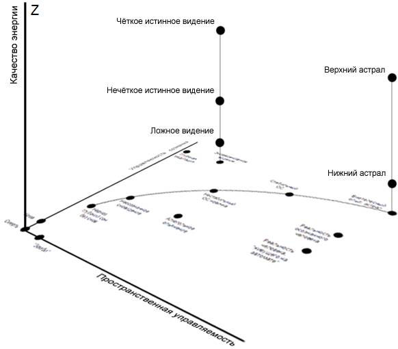 Как видно из схемы, мало вложить энергию в то, чтобы достигнуть состояния сознания, способствующего видению, нужно вложиться ещё и в качество этого видения. Всё это требует значительного приложения усилий, так что неудивительно, что поддерживать такое состояние сознания всё время невозможно.
