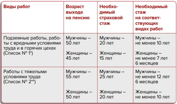 тяжелыми условиями труда, занятость в которых дает право на пенсию по возрасту (по