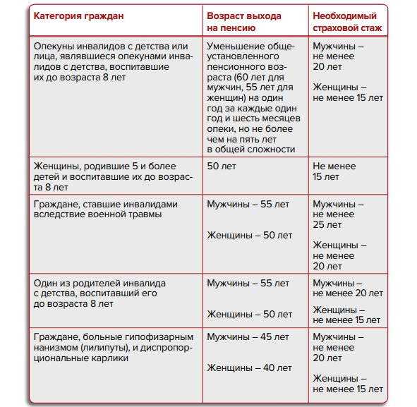 женщин, 60 лет для мужчин). Такое право имеют отдельные категории граждан, определенные законом.