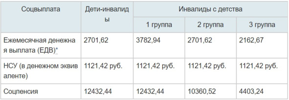 *в нижней строчке в скобках указан максимальный размер ЕДВ при условии отказа от пользования НСУ в натуральной форме Несколько раз в году осуществляется индексация выплат. Как правило, их размер после этого увеличивается.